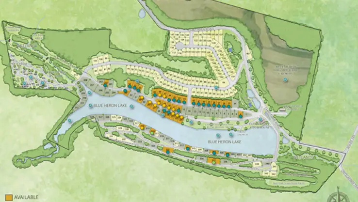 Explore the layout of Blue Heron Village and see just how close you are to everything that makes this place special. From lakeside lots to community spaces, our map gives you a clear view of how thoughtfully our village is designed, where nature, comfort, and connection all flow together.