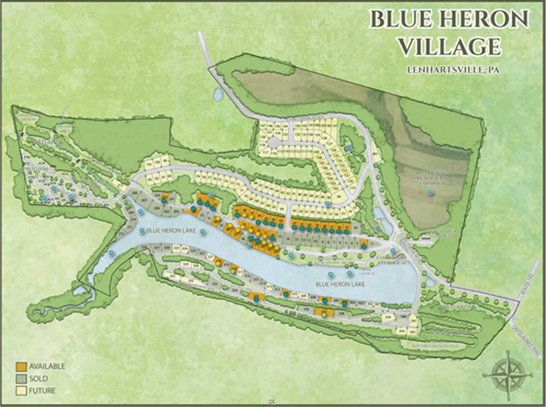 Take a closer look at Blue Heron Village and see how our community comes together around the lake. Every home is thoughtfully placed to make the most of the peaceful views, open spaces, and quiet charm that define our village. Use the interactive map to explore the layout, see nearby amenities, and picture what life here could look like for you.