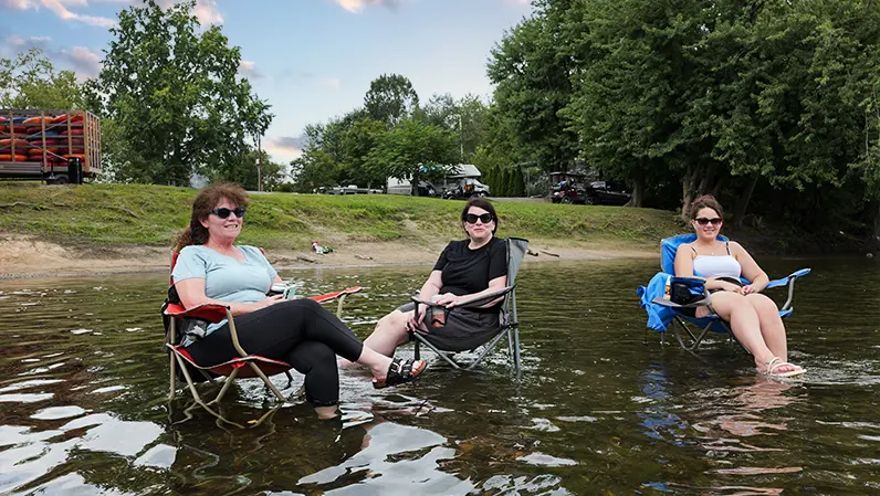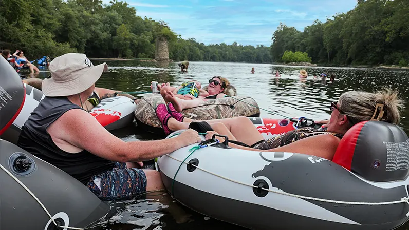 After everyone chooses a tube, you'll set off gently into the current that carries you downstream back to the campground.