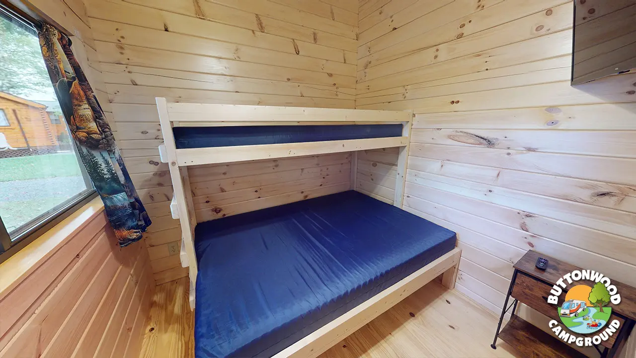 Enjoy the comforts of home while staying close to the outdoors with cabin camping at Buttonwood. Our cabins are a great option for guests who want a cozy place to relax while still being steps away from campground activities and amenities. Cabin camping is perfect for families, couples, or anyone looking for an easy, comfortable way to experience Buttonwood.
