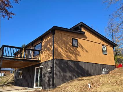 Tucked among the trees with a view of the lake, this cozy new cabin-style home offers the perfect mix of charm and comfort. The open-concept kitchen and living area features a warm fireplace, vaulted ceilings, and plenty of natural light.