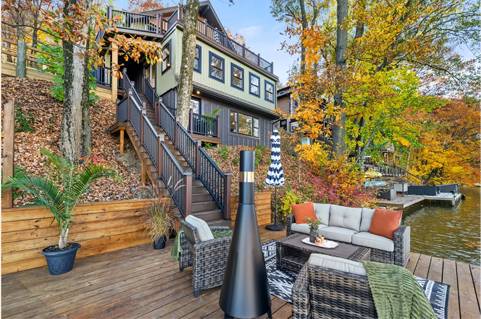 This spacious four-bedroom, three-bath home is a true lakefront retreat. With cathedral ceilings, a bright open kitchen, and multiple decks overlooking the water, it’s designed for both relaxation and entertaining.