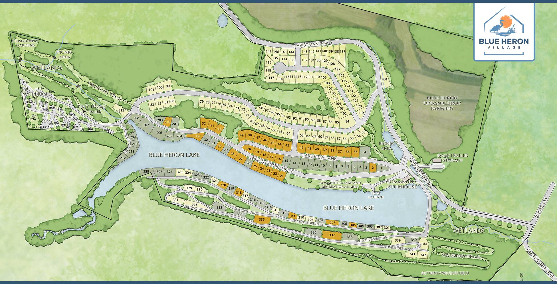 Find the perfect spot to build your home at Blue Heron Village. Each lot is designed to offer peaceful surroundings, scenic views, and easy access to the lake and community spaces. Whether you’re ready to build now or just planning ahead, our available lots give you the flexibility to create the lifestyle you’ve been dreaming of.