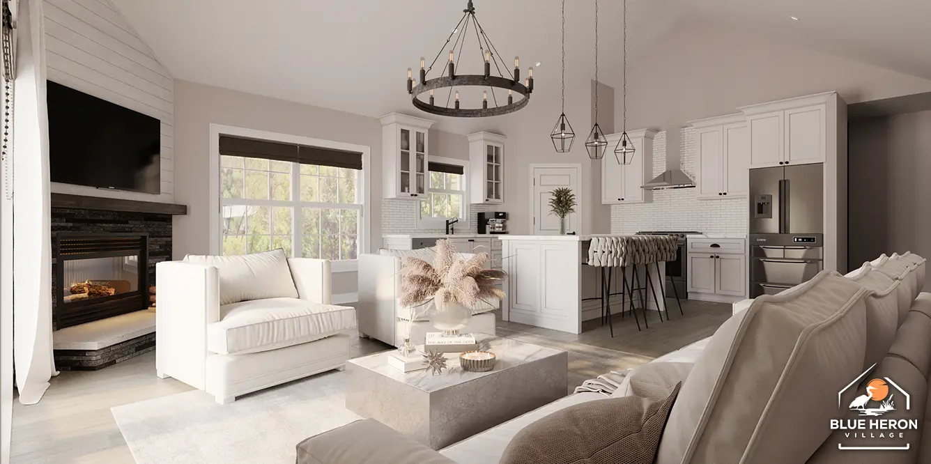 Model A is a flexible floor plan designed with comfort and simplicity in mind. It’s a great fit for individuals, couples, or families looking to build their future home right here at Blue Heron Village. View the orbit video for a full 360° look at the layout, and check out the floor plans for more details. Customization options are available, reach out to explore what’s possible.